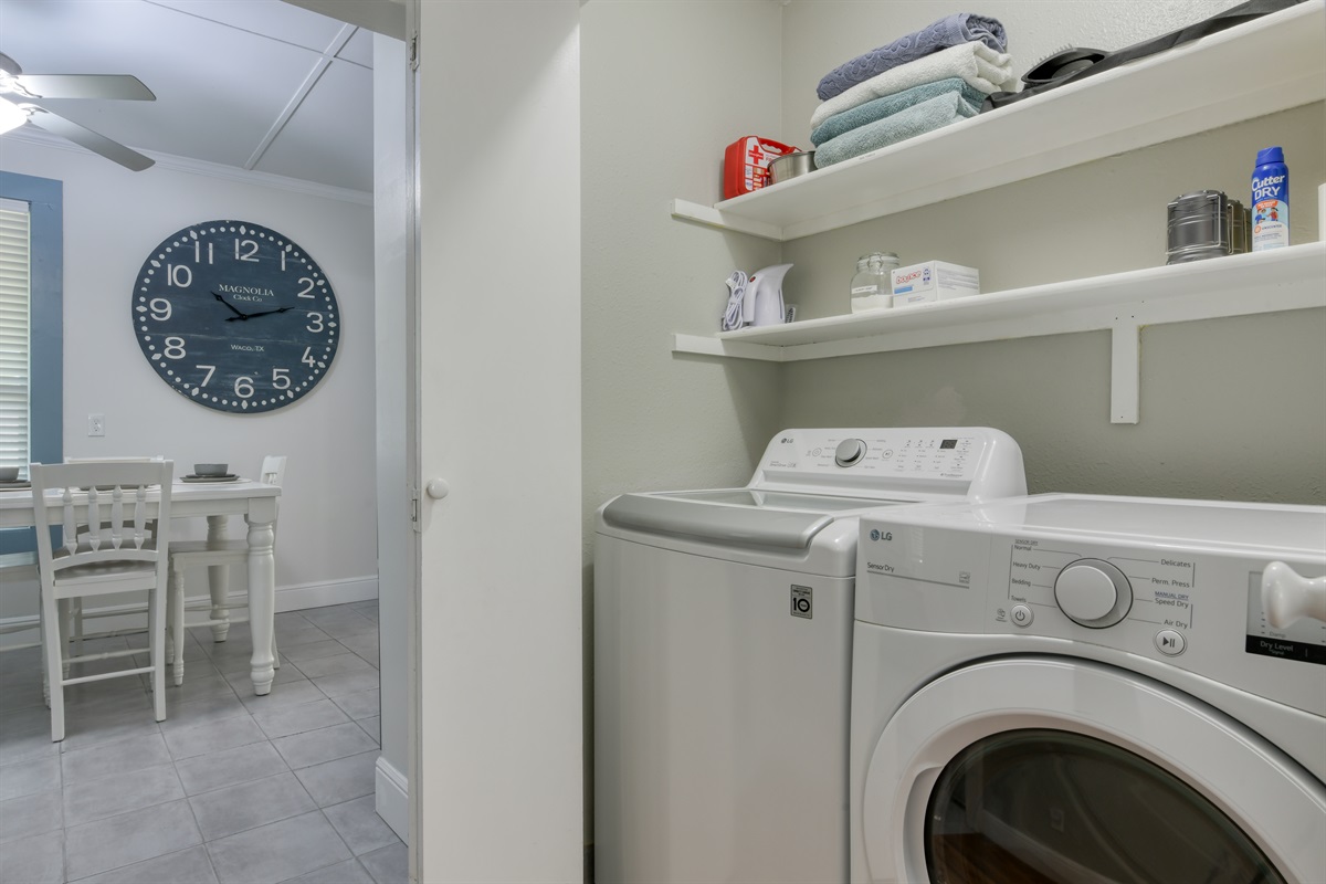 The house features two full bathrooms, each equipped with a shower/tub, shampoo, conditioner, body wash, towels, washcloths, and other essentials for your convenience. Most importantly, both bathrooms have a bidet. No dirty butts in The Blue Chateau!
